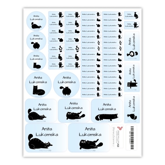 Naklejki z imieniem twojego dziecka do szkoły lub przedszkola - CZARNE KOTY