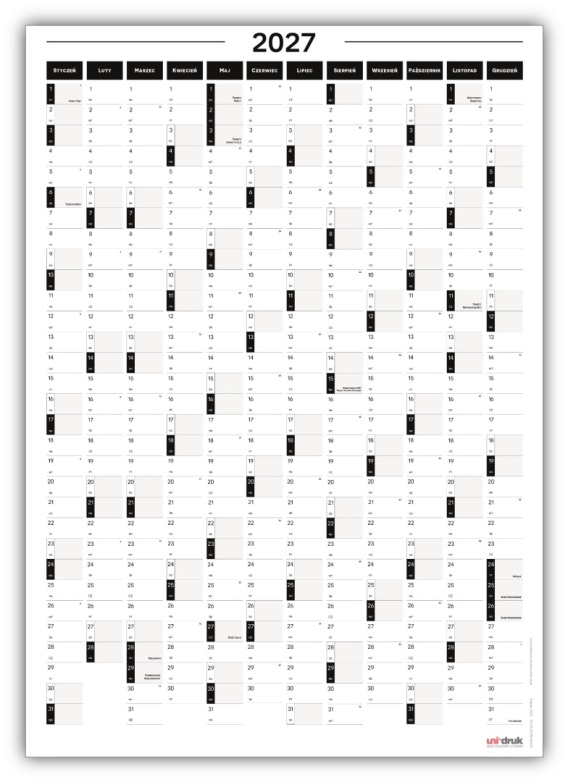 • Samoprzylepny Planer ścienny kalendarz 2027 B2 suchościeralny pionowy B&W