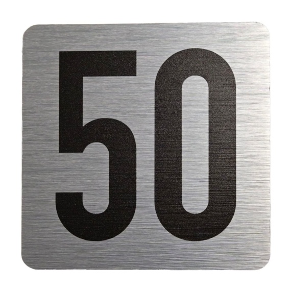 Oferowana tabliczka ma wymiar 8 × 8 cm i wykonana jest z dibondu z frontem ze szczotkowanego aluminium. To prawdziwy metal – nie nadruk czy imitacja – dzięki czemu prezentuje się niezwykle szlachetnie i nowocześnie.